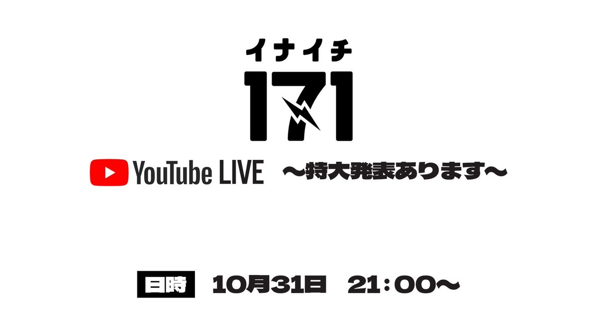 10/31(金)21時から行うYouTube Liveにて特大発表!